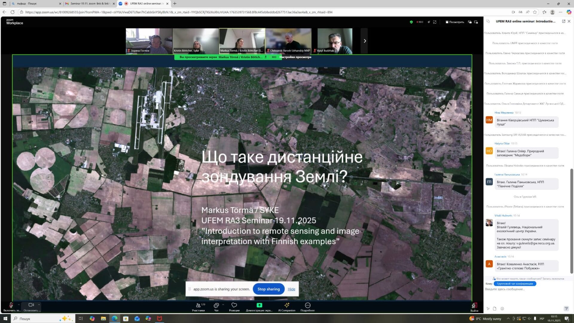 Фінські колеги надали огляд теоретичних основ дистанційного зондування, представили загальновживані супутникові зображення та методи їх корекції.
