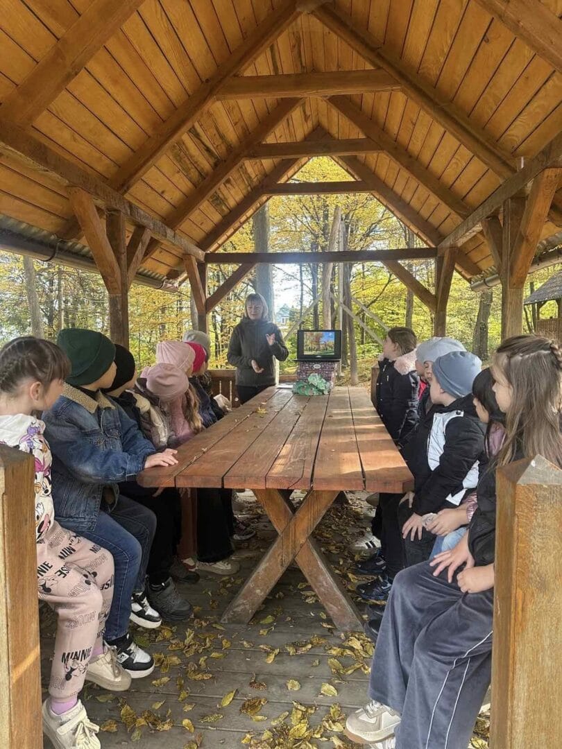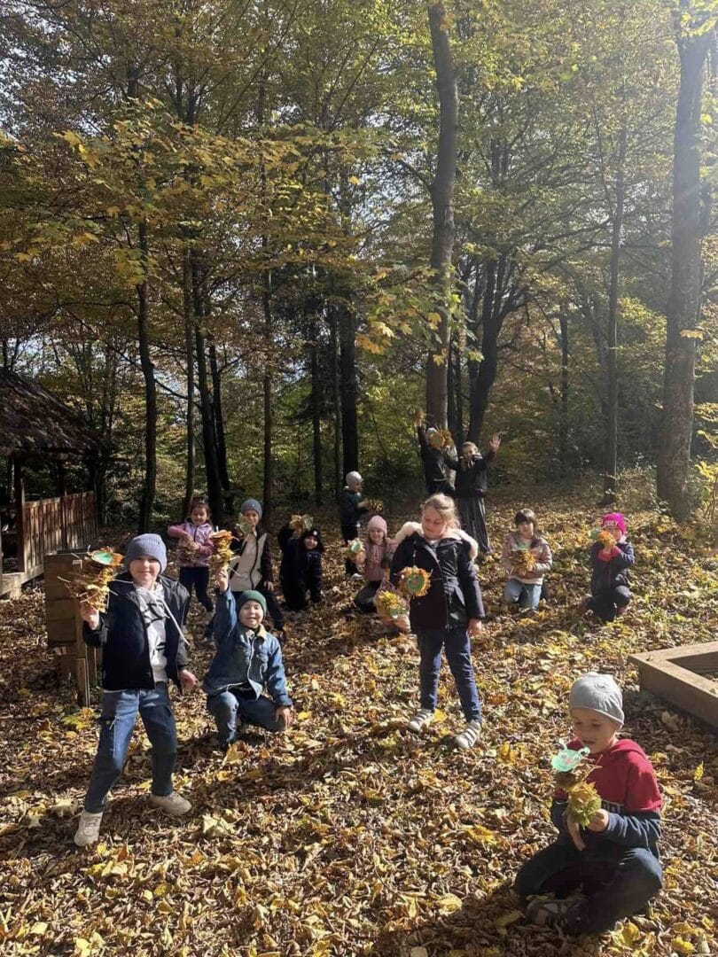 Під час еколого-освітнього заняття школярі спостерігали за осінніми змінами в природі, вчилися помічати, як готуються до зими дерева, кущі, птахи та інші мешканці лісу.
