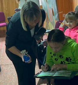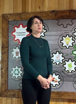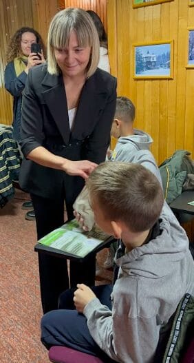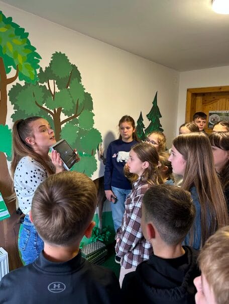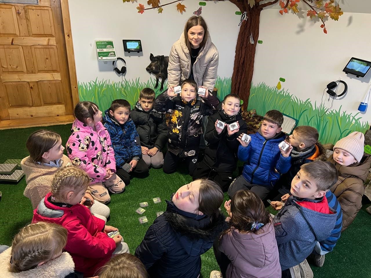 Координаторка проєкту - Ольга Димченко, проводить екоурок для школярів у зоологічній кімнаті-музей НПП “Гуцульщина"