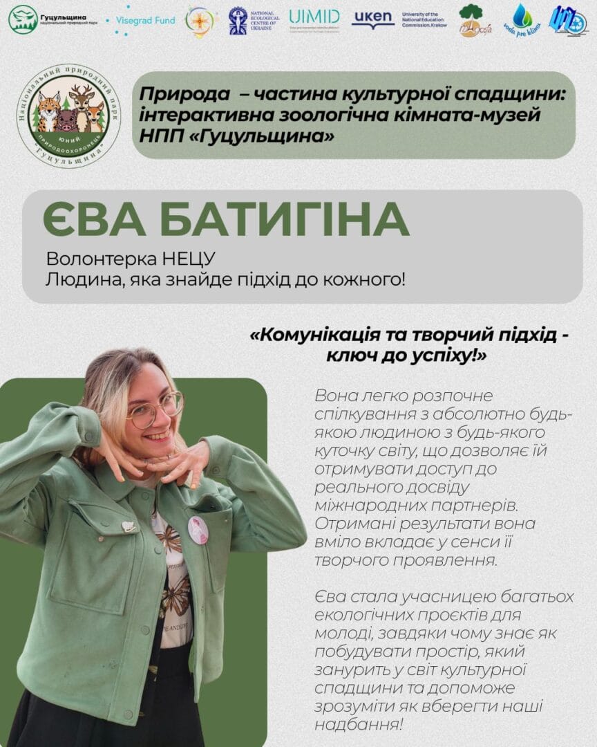 Знайомтеся з людьми, які творять справжні дива у межах ініціативи «Природа – частина культурної спадщини: інтерактивна зоологічна кімната-музей НПП «Гуцульщина»»!